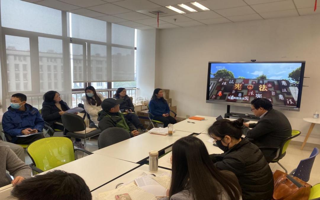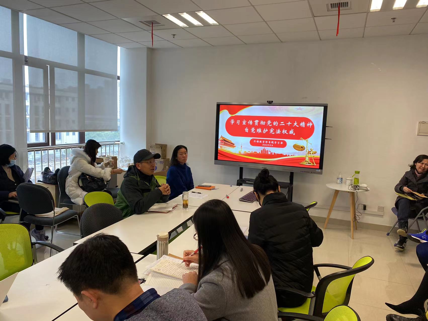 为迎接我国现行宪法公布施行四十周年和第五个“宪法宣传周”的到来,深入学习宣传贯彻党的二十大精神和习近平法治思想,弘扬宪法精神,维护宪法权威,外语教学部于12月1日下午在南苑2号楼401会议室举行了以“学习宣传贯彻党的二十大精神,自觉维护宪法权威”为主题的专题学习会。会议由支部书记吕永红同志主持,外语教学部全体教职工出席。