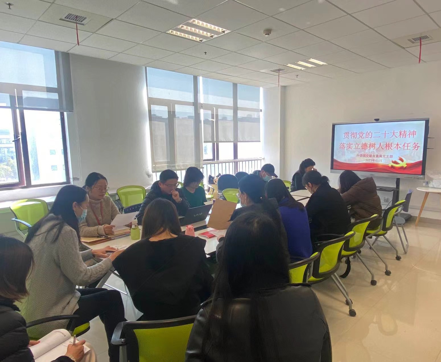 3月2日,在个人原原本本学习党的二十大报告和集中观看专家解读的基础上,外语国交联合直属党支部开展了“贯彻党的二十大精神,落实立德树人根本任务”主题研讨交流会,党员老师们结合教书育人实际,积极交流发言。