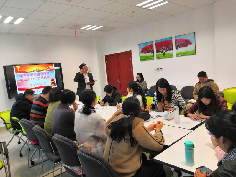 4月4日下午,外语教学部全体教师在401会议室召开思想政治学习会议,认真学习习近平总书记在学校思想政治理论课教师座谈会讲话精神和上海市教育工作大会精神,会议由支部书记吕永红主持。