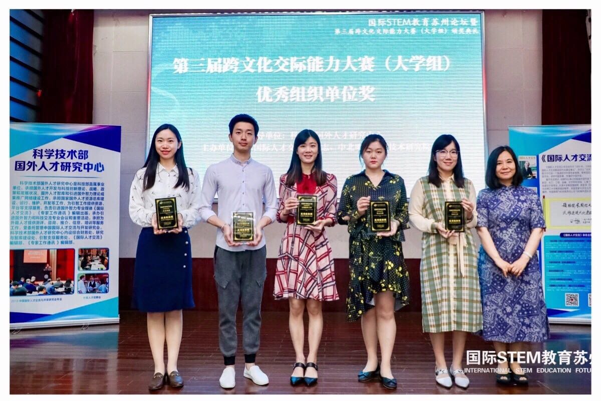 2019年5月30日,由科学技术部外国专家服务司指导,科技部国外人才研究中心和中国光华科技基金会主办的“第三届跨文化交际能力大赛(大学组)颁奖典礼”在苏州大学红楼会议中心举办。我校派出大学外语教研室主任陆懿媛老师率队参加本次比赛,来自护理与健康管理学院的张含逸获得华东赛区二等奖,来自医疗器械学院的蒋闻和来自药学院的赵芳获得华东赛区三等奖,我校获得了优秀组织奖。在本次大赛中,外语教学部指导教师团队精心制定了参赛和培训方案,组织全校共192人参加上海赛区初赛,其中51人晋级华东赛区复赛。