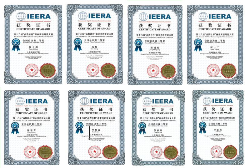 2025年年末,在第十六届“高教社杯”商业英语辩论大赛总决赛暨2025年全国高校创新创业系列赛中,由我校医疗器械学院、影像学院、康复学院及医学技术学院七名优秀学子组成的辩论队,在近四个月的鏖战中,经过层层角逐,在全国范围内百余支顶尖参赛队伍中脱颖而出,最终荣获全国二等奖的优异成绩,为我校赢得了荣誉。我校外语教学部李悦、阮俊斌等教师获得最佳指导教师奖。