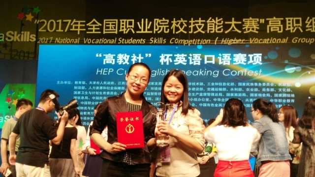 2017年5月17日至19日,外语教学部率领学生参加在在江西南昌举行的2017年全国职业院校技能大赛(高职组)“高教社”杯英语口语赛项目中荣获一等奖。我校药学院药监专业2015级学生田颖经过“职场考验”、“职场描述”、“情景交流”和“即席辩论”4个比赛环节的激烈角逐,在半决赛和总决赛中表现突出,获得全国一等奖,为学校赢得了荣誉,向校庆两周年献礼。