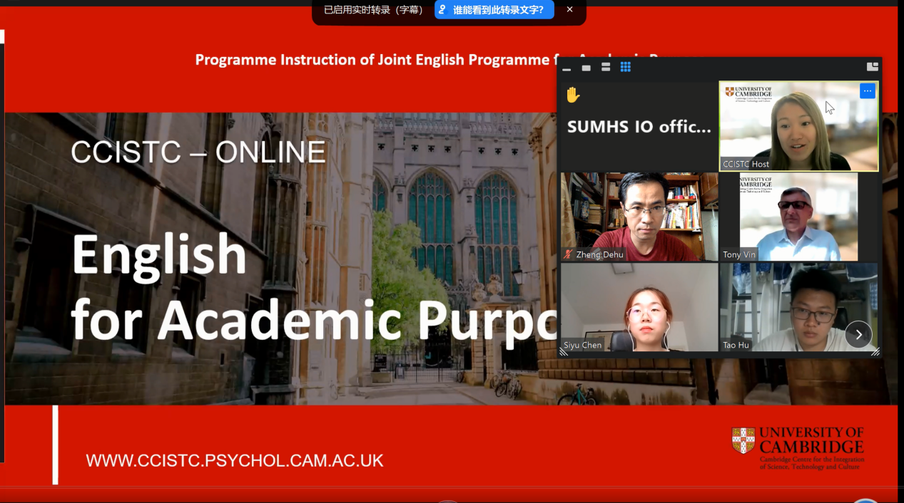 今年暑期,国际交流处学生国际事务服务中心、外语教学部、剑桥大学剑桥科技文化融合中心携手,创建了暑期学术英语课程,为我校学生提供了学术英语能力提升的学习平台和优质的学术英语学习资源。