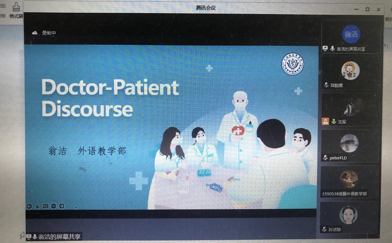 随后由两位教师进行说课展示,各教研室主任进行点评。翁洁老师进行题为Doctor-Patient Discourse的说课展示,该课程把医学人文融入学术视野,把根植本土和放眼世界相结合,向世界阐释推介更多具有中国特色、体现中国精神、蕴藏中国智慧的优秀文化。整个课程设计把理论与实践相结合,通过中国话语研究导入医患话语沟通,为医学院校学生今后与患者打交道打下基础。课程通过中国话语特点引申到病房护士与患者场景案例分析,把语言学理论引入其中,为医患沟通提供借鉴。